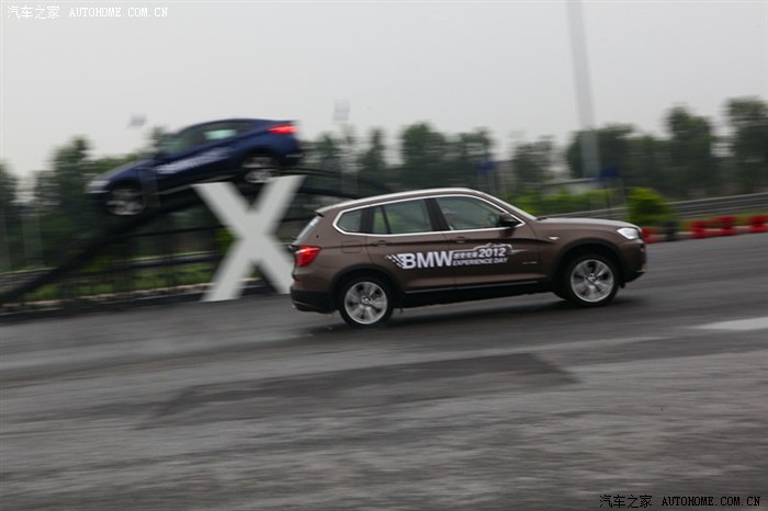 最后一项是油门到底全力加速后的紧急制动,考验BMW X系列的制动性能。既然是是踩坏了白送,平时开自己车肯定舍不得狠跺到底,这回终于有机会玩命豁车了,宝马的刹车响应非常及时到位,湿滑的地面提升了制动的难度,却更好地体现X系列的制动效果。