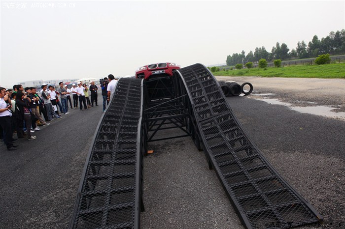 爬坡表演,关于XDrive这个NB的技术,这里省略10000个字,反正宝马为了显摆这个昂贵的技术发明出了这个蹂躏SUV的变态SM器具.......教练摸的那个滚轮都上了润滑油,比冰面还滑就是为了模仿在有雪的山坡上爬坡的路况.........但是就让教练开给我们看,不让我们体验,太鄙视我们的驾驶技术了!