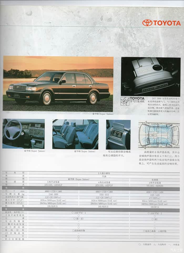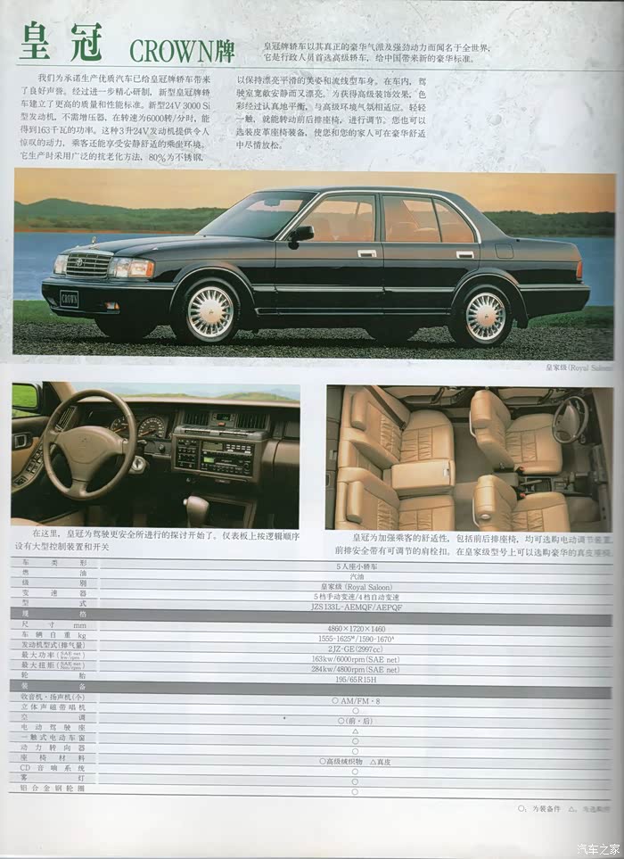 当年的中文宣传册。这一页是皇家沙龙高配的,有选装真皮座椅