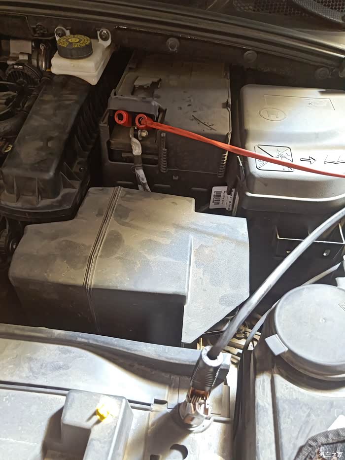 用电瓶电,搭电帮火也可以这样。负极搭保险杠上面的那个位置。
