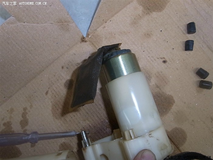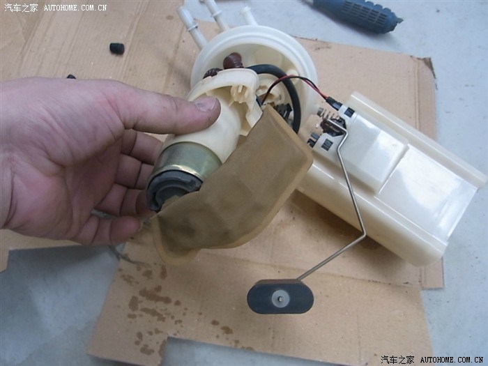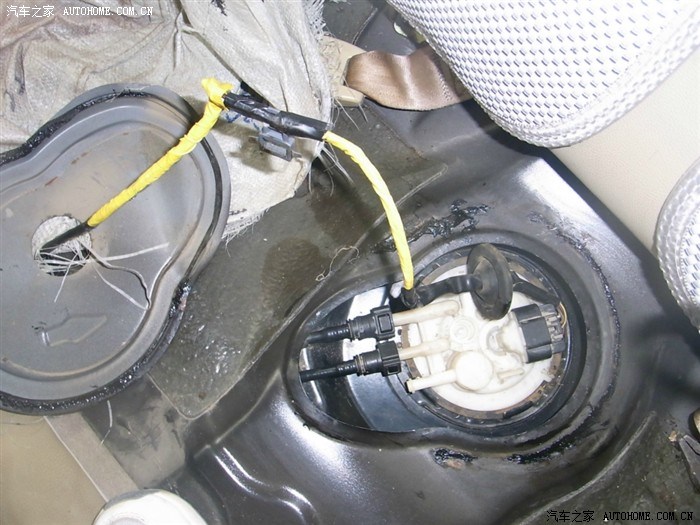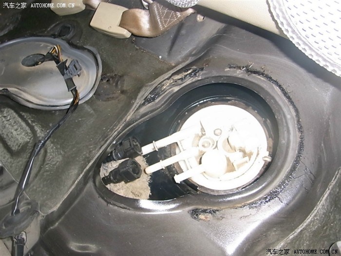 3:拆油泵,油泵在后座地下,后座两边有两个卡子,搬住后座猛向上拔就是了,掀开后座后,有个盖子,扁口螺丝刀撬开,很好撬的,都是胶粘住的,然后就看见油泵了,有三个管子,这三个管子是带卡子的,用手用力捏才能拔下来,然后看见油泵上油个弹簧卡子,用扁口螺丝刀撬开就OK了,油泵提的时候要注意油浮子,油泵拿出来后,看图吧,图片是借得F3的,不过BYD的汽油泵都是通用的和F0的一模一样,