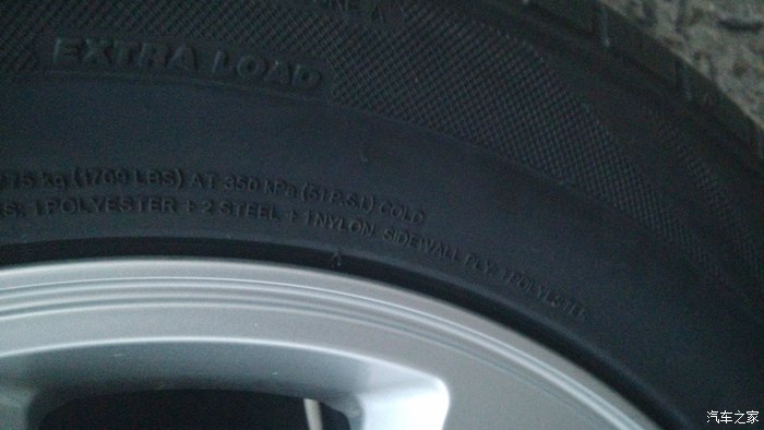 轮胎参数。 胎壁:1层聚酯+ 2层钢丝 +一层尼龙 胎侧:1层聚酯