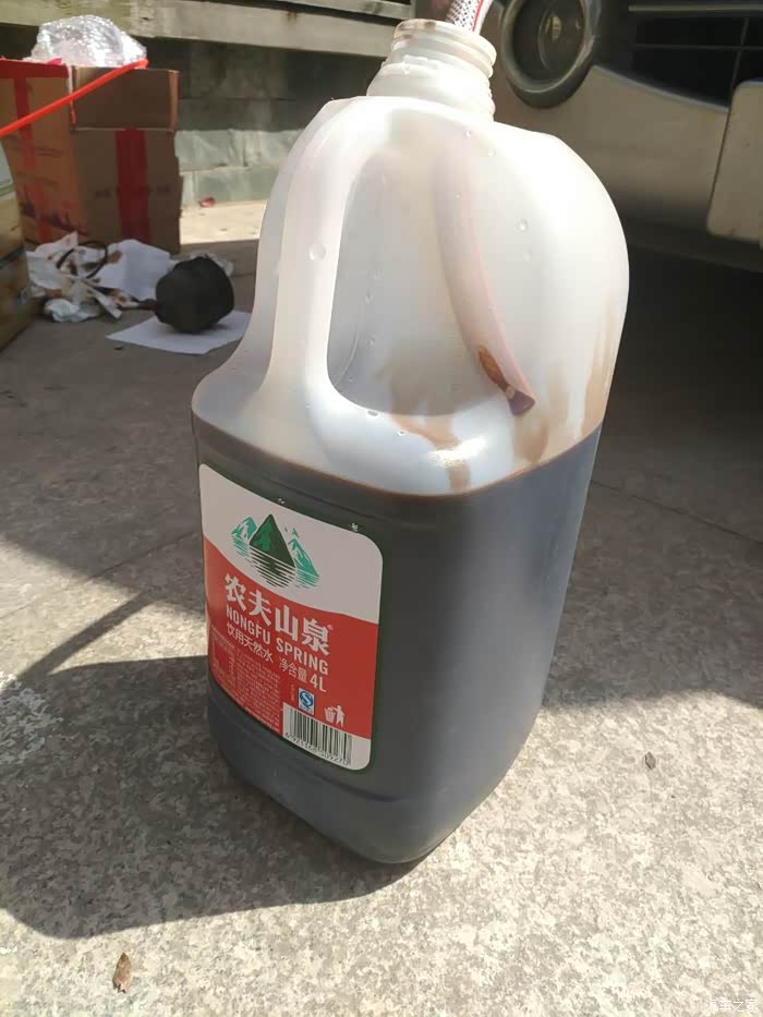 粗粗的出油管接到车下的4L农夫山泉空筒,管子全部接好,只差通电开始抽了。