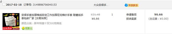 4. 加厚棉手套一双 (6.6元包邮10双,又是它)