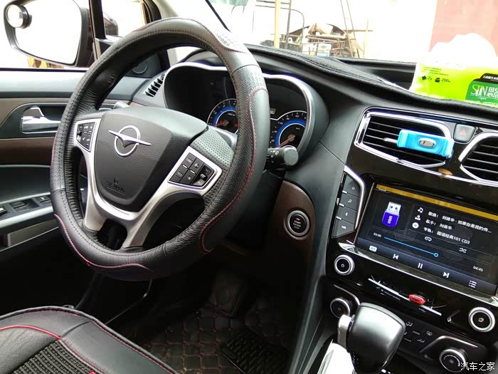 变速箱档杆,大大的,手感舒适,档把后面还有音量旋钮,可以盲操作,安全性不错。电子手刹看到了吗?等红绿灯时上掀,踩油门自动解锁,太方便了!这个电子手刹还有一个功能,我亲自试验了,60时速不刹车的情况下,上掀电子手刹,十分线性的刹住车!这是普通手刹不具备的,一个电子手刹系统据说比普通手刹贵5000左右,海马真是把肉烂在了锅里,不懂的人根本不明白啊,像ESP,后轮独立悬挂,那些随大众的人根本不在乎这些安全配置的,海马啊,别想着一月卖几万辆了,因为懂你的人太少了。坐垫4S送的,打算换掉。