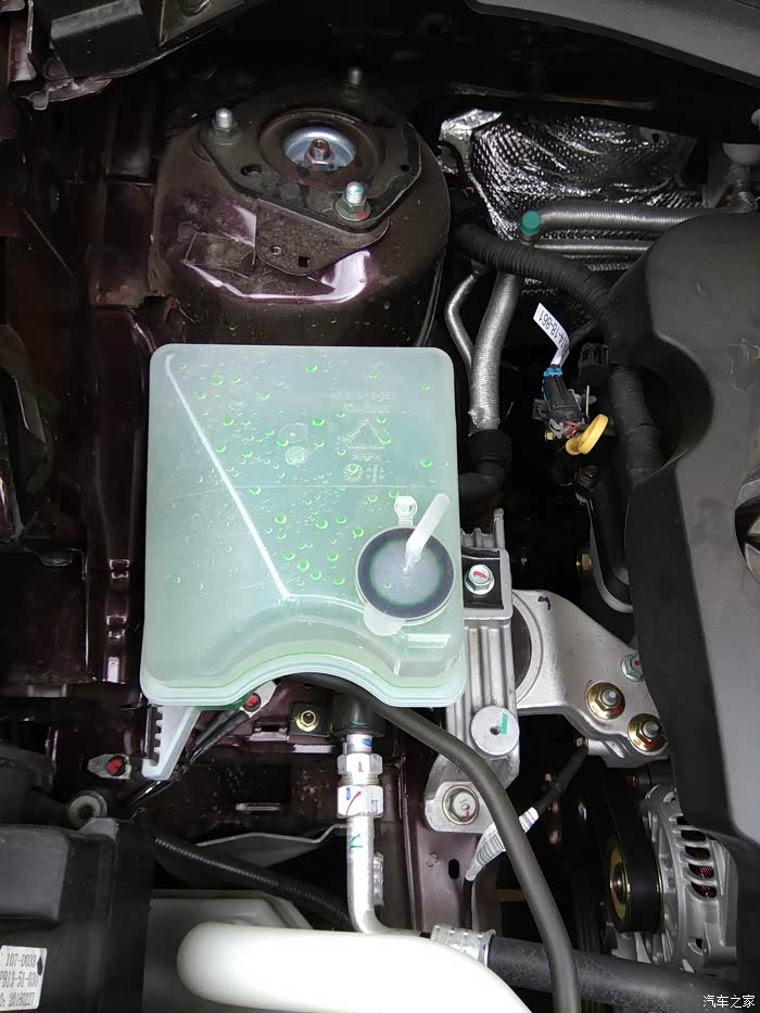 防冻液是绿色的,有透气孔,外表无湿痕,很好,原来的车常常有液体喷出。好了机仓我不是很专业,只能看图简单介绍下,现在要看下驾驶室了。