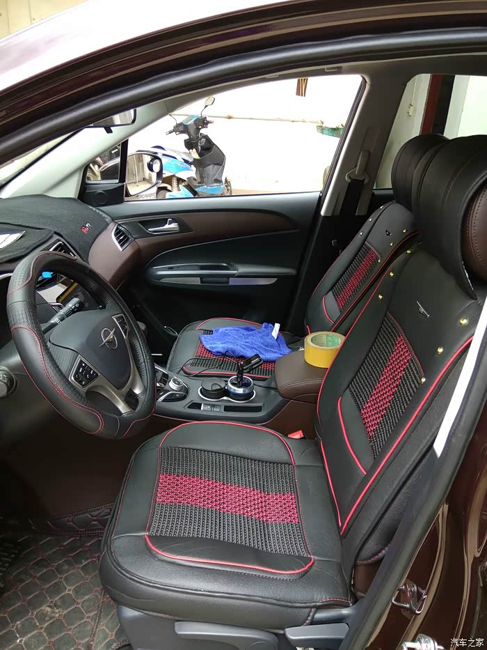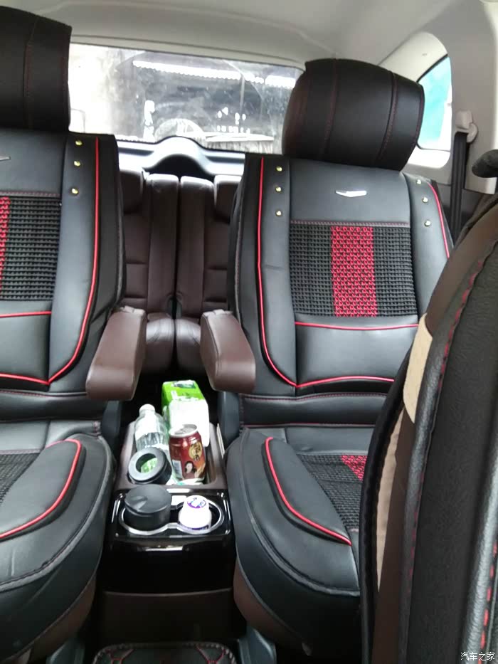 前排,这座套颜色深了,打算换掉,宽大的扶手箱,完美的色彩搭配。