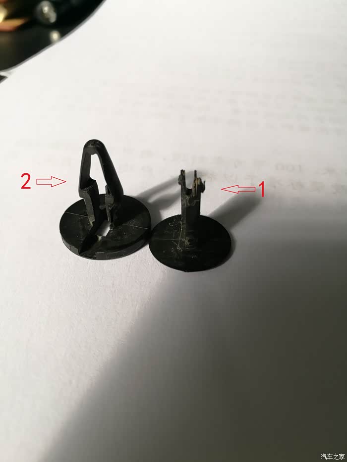 松卡扣时,必须先把卡口上的那个小片片(箭头1所指,有楔子的作用)撬出来,才能把卡扣主体(箭头2所指)撬起来。