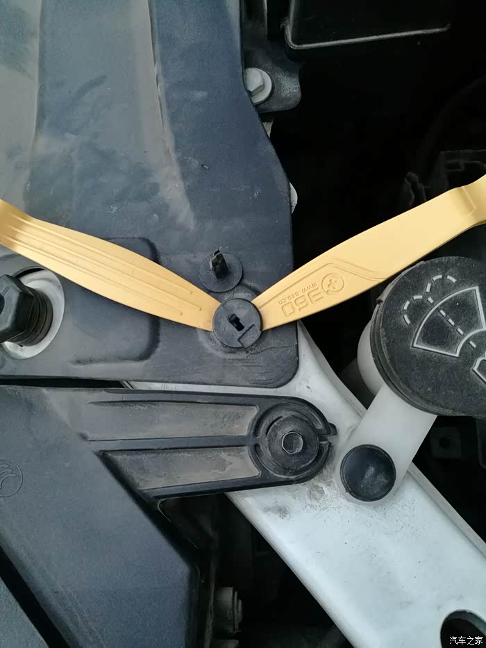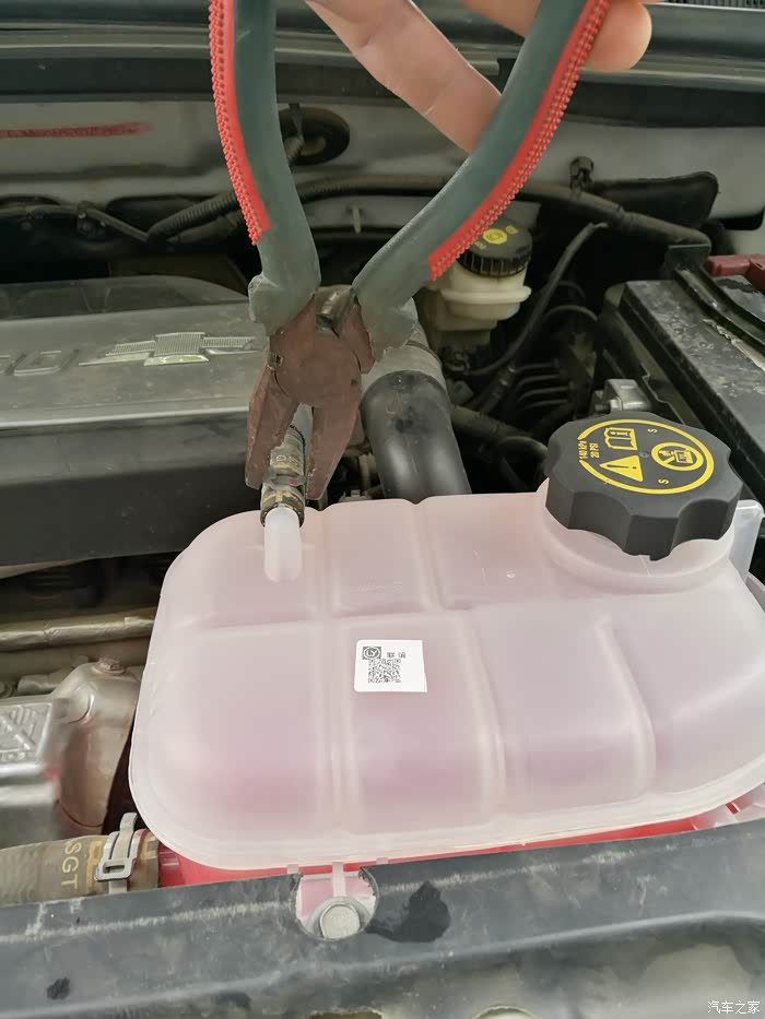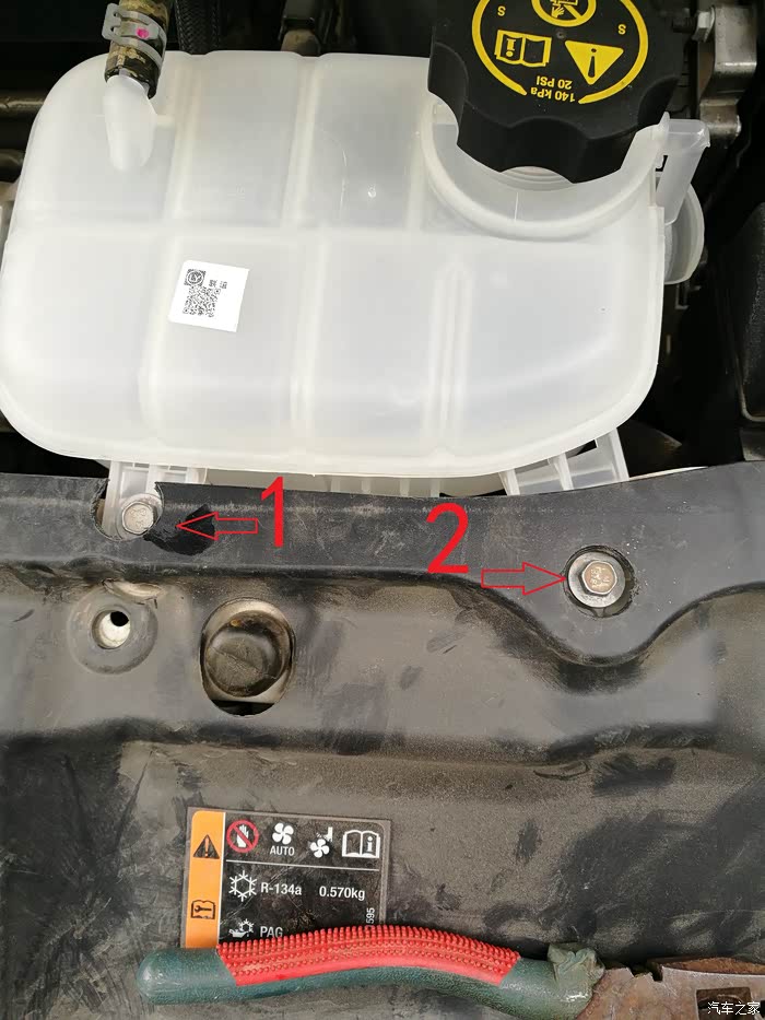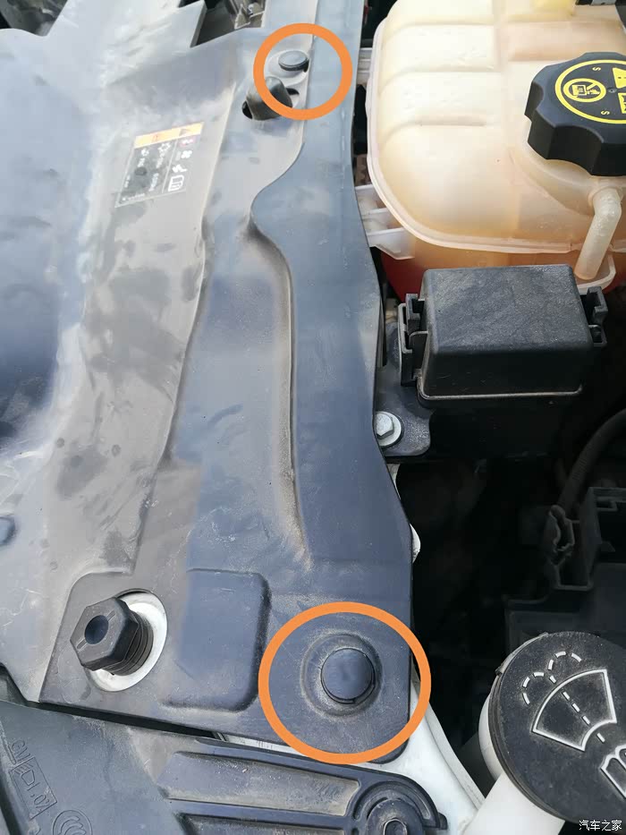 以前在创酷QQ群里经常听到群友抱怨冷却液壶又裂了,曾庆幸自己的壶快5年了还没裂。但前些日子打开前盖,发现冷却液显著减少,原来自己的液壶终于也裂了。想在4S保养时顺便换了,居然被告知没有现货要等几天。那就自己换呗,花35大洋(没买盖子)买了一个回来(新液壶和原装的一模一样的,也挺厚实)。动手时,才发现固定液壶的两颗螺丝被塑料板遮挡住,拆不下来,而塑料板拆不下来的原因主要是卡扣拆不下来,上网搜索相关教程,居然没有发现教程,于是向汽修师傅请教,终得要领,现把自己动手更换液壶的过程中分享一下。首先,在冷车状态下(热车的冷却液温度高),把液壶里能看见的冷却液抽干净;其次,用钳子把卡簧松掉的同时把卡簧褪到连接管的非压接处,一边转动连接管一边拔,把连接管和液壶分离;第三,撬掉橙色圈处的两处卡扣,拆卸掉液壶的固定螺丝,把液壶卸下来;最后换上新的液壶,把连接管装上,把卡簧复位就行了。因为是事后补的照片,无法还原当时的拆除过程了,所以下面几张图片顺序上不一致,仅供大家了解一下的一些细节。