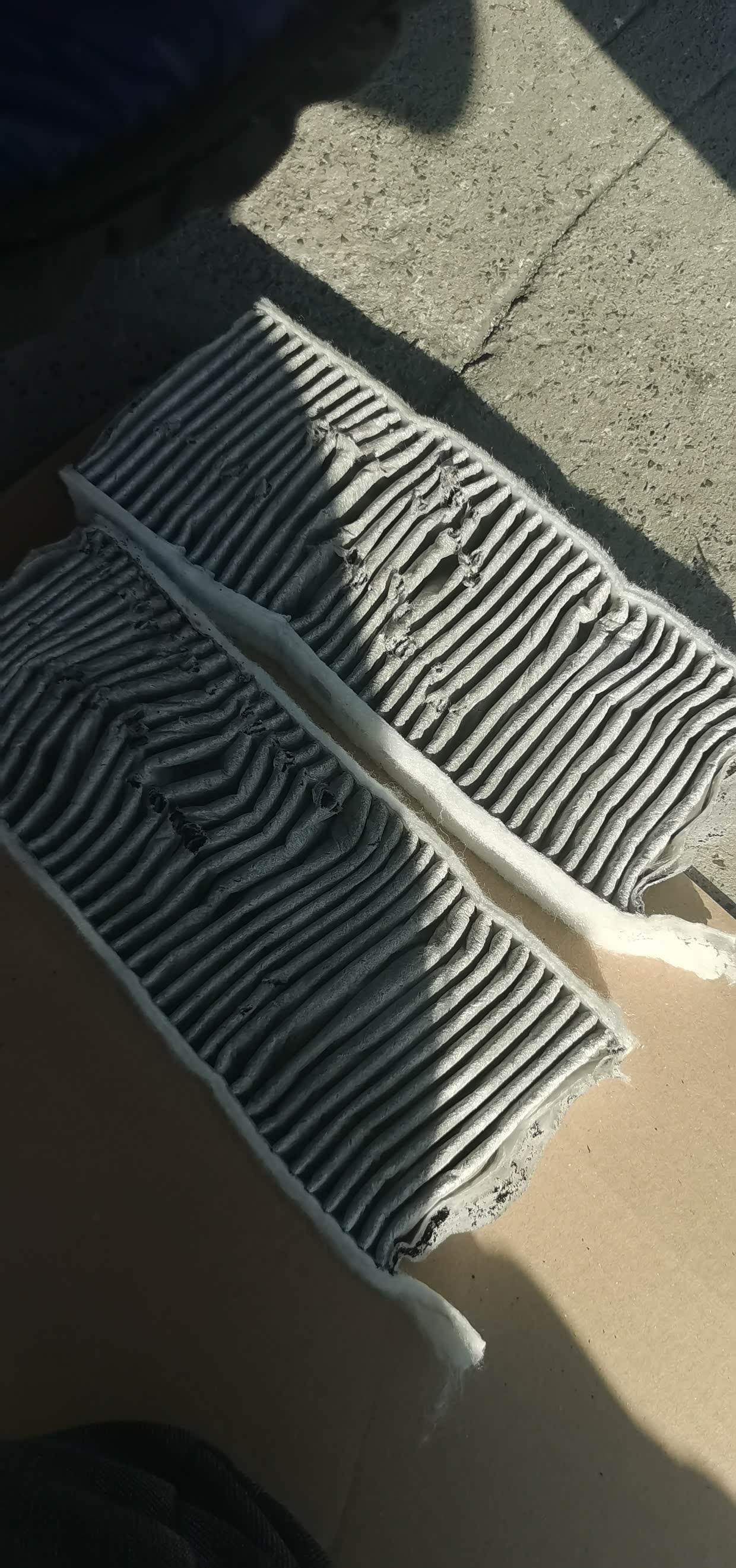 自己拆开换了一下,发现装空调滤芯的盒子里有二根加长塑料棍。滤芯往外拉的时候正好卡在上面。使劲拉扯旧的空调滤芯就烂掉了。