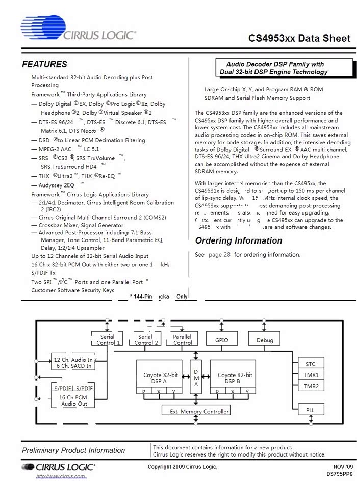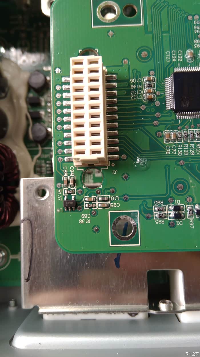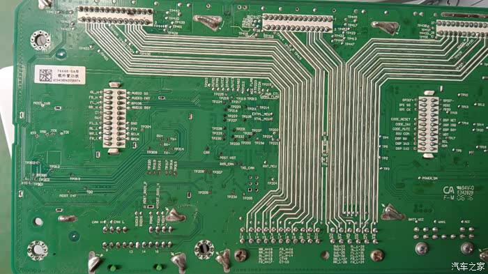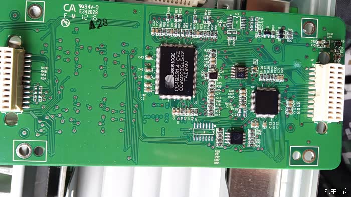 中间是音频解码器,CS495314(DSP音频解码器)。右边是CS42528(8通道SPDIF接收器) 主芯片都有厚厚的三防胶,透明的比较软,但涂抹工艺比我之前拆的JEEP指南者要差些。