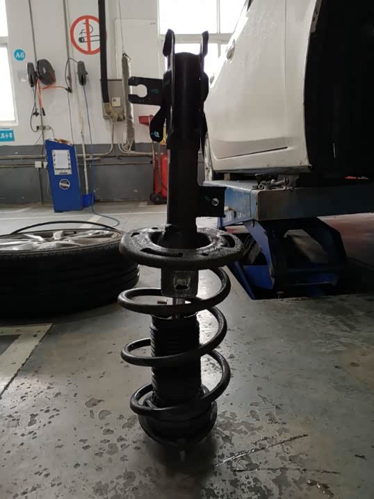 被烦人的异响困扰了3个多月的我,终于在昨天把他给彻底消除了。原因是前右的减震器桶柱弯掉了…弯掉了…这得多大外力。我无非过了个坑,然后轮胎爆了而已…