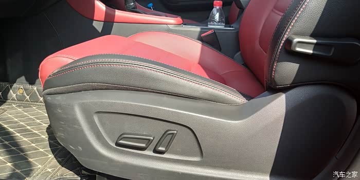 电动的座椅。看上去档次感很高。红黑的内饰搭配看上去很运动啊。