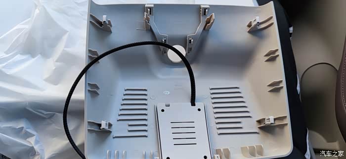 里面结构很简单只有一根走线,这个走线是只有选购了家装包才可以,需要从那个防眩目的后视镜取电