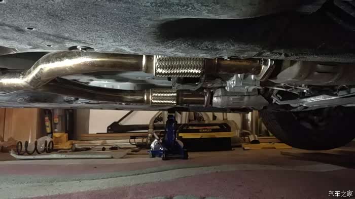 装避震还算轻松的了,排气就遭了老大罪了,车底空间太小,连侧身都不行,一个人弄真的是要命,原产排气过了一冬天螺帽全锈住了,wd40也不好使,老费劲了,***一颗还给我滑牙,想死的心都有了,无奈借了切割机回来直接把螺帽切了才搞定,真空管少了个小口径的三通也是各种找。。。都是泪