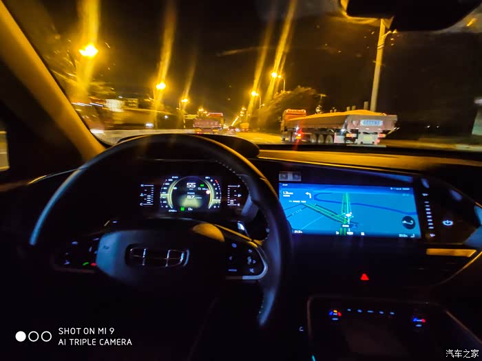 到家油耗从9.0L又降到了8.7L,夜间高速行驶,星越的表现也很不错,首先是自动大灯,可以自己根据路上的状况调节远近光的,跟车、会车的时候会自动调节到近光灯,前面没车的时候会自动开启远光灯。