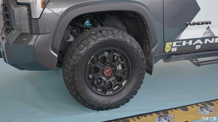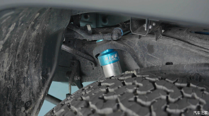轮胎方面,这台车选装的是305的轮胎,而原厂的是285,所以也是可以装上305的胎去上牌。另外减震方面是选择我们所熟悉的king品牌。