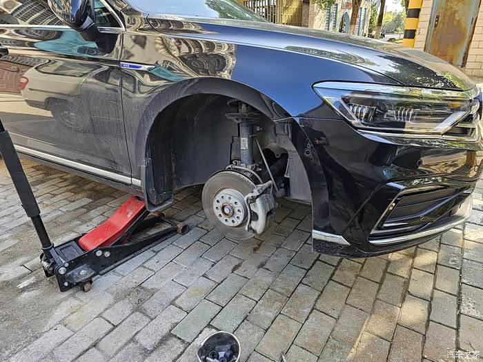 车子顶起,拆下轮胎。