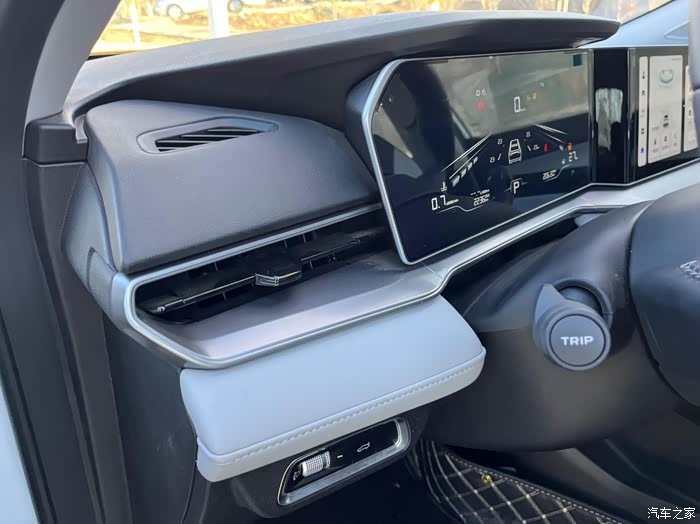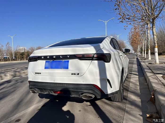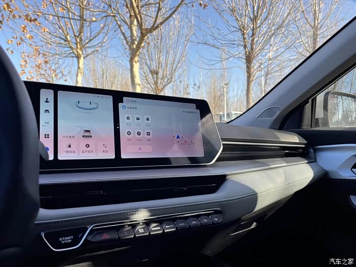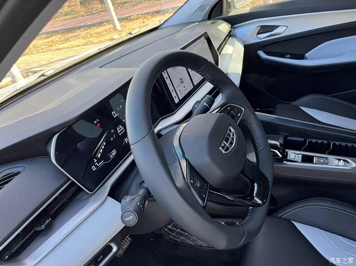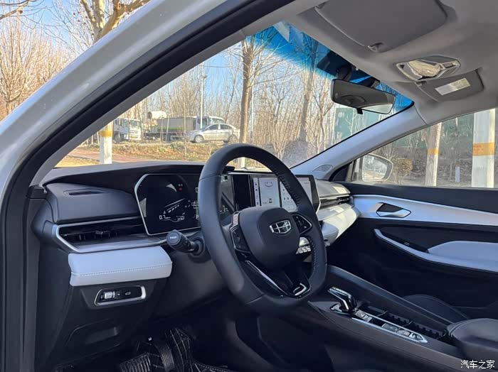 看看这悬浮式的中控大屏,画面还算清晰,用手指触屏操作时的反应还挺快,后来才知道车机系统中搭载了吉利银河OS系统,哈哈,惊喜。