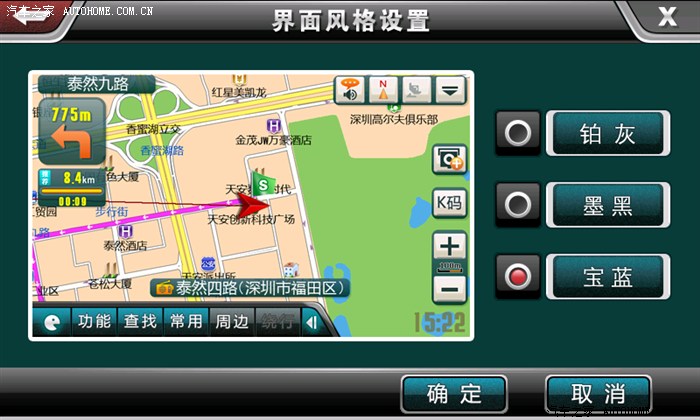 此效果只在界面风格为“宝蓝“时有效,在”铂灰“、”墨黑“风格下显示的是”沃尔沃“