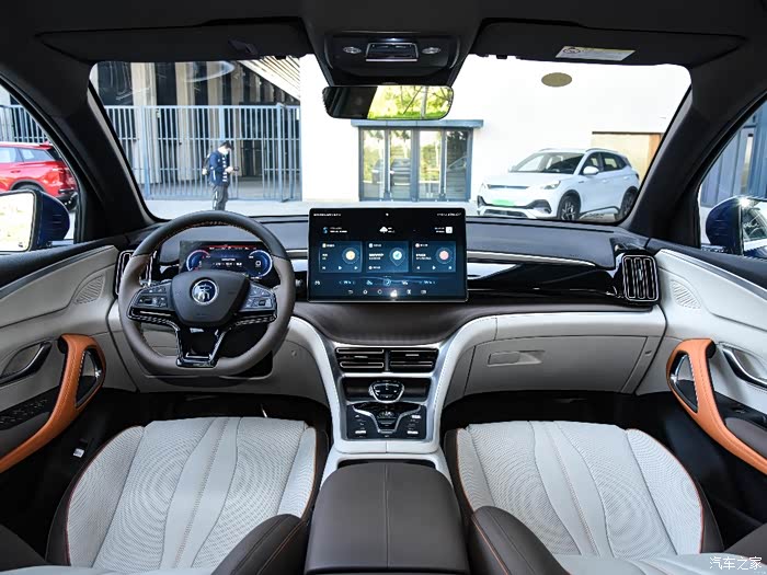 15.6英寸窄边框大屏是内饰中最大的亮点,占据了C位,上车的一刻所有乘客的焦点均聚集于此。