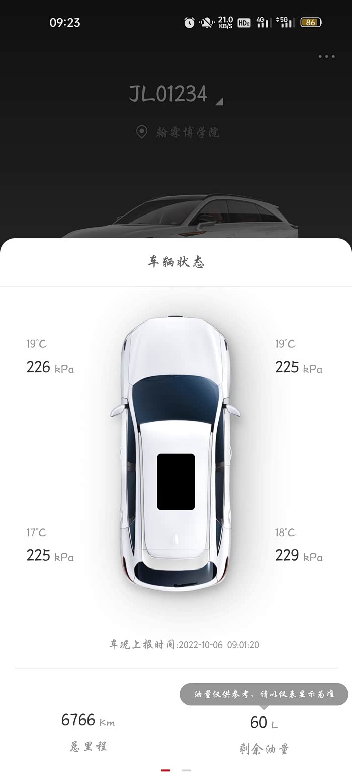 第二,检查一下车辆轮胎的胎压,温差较大,一定要及时的充放气,神兽胎压在2.2-2.5之间,夏季可以低一些在2.2左右,冬天可以高一些在2.4-2.5左右。对轮胎除了检查胎压以外,我这里比较偏北,出现霜冻天气,路面结冰,等过两天开始经常下雪结冰的时候,要提前换雪地胎。