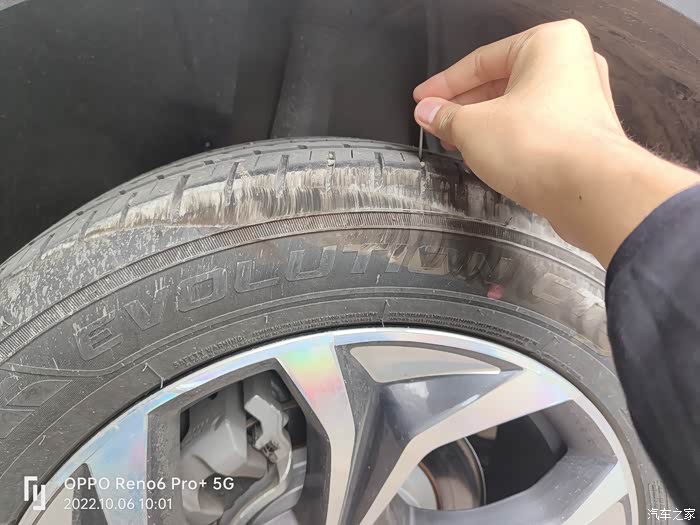 检查有没有异物,就怕一些钉子本来没扎进去,走着走着扎进去了,顺便剔除胎缝小石子