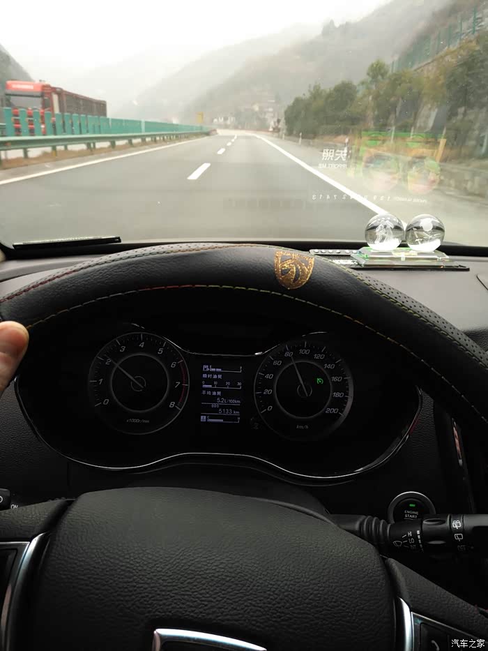 返程由重庆出来进湖北境内有一段下山路约20公里的长下坡,限速60,原因可能是由于弯多隧道多,而且多雾(感觉真是坐飞机似的,云朵就在路两旁,有时候一下就冲进云里了,能见度瞬间没有了,感觉挺危险的)这一段路是最省油的,一是由于长下坡,二是速度慢。基本上在4.*,最低时到过3.8(没有留下珍贵的照片)