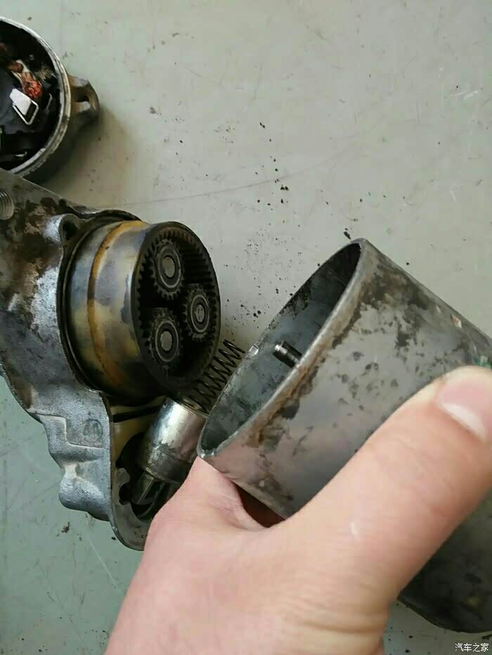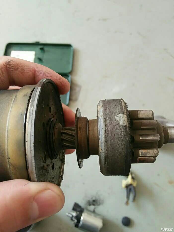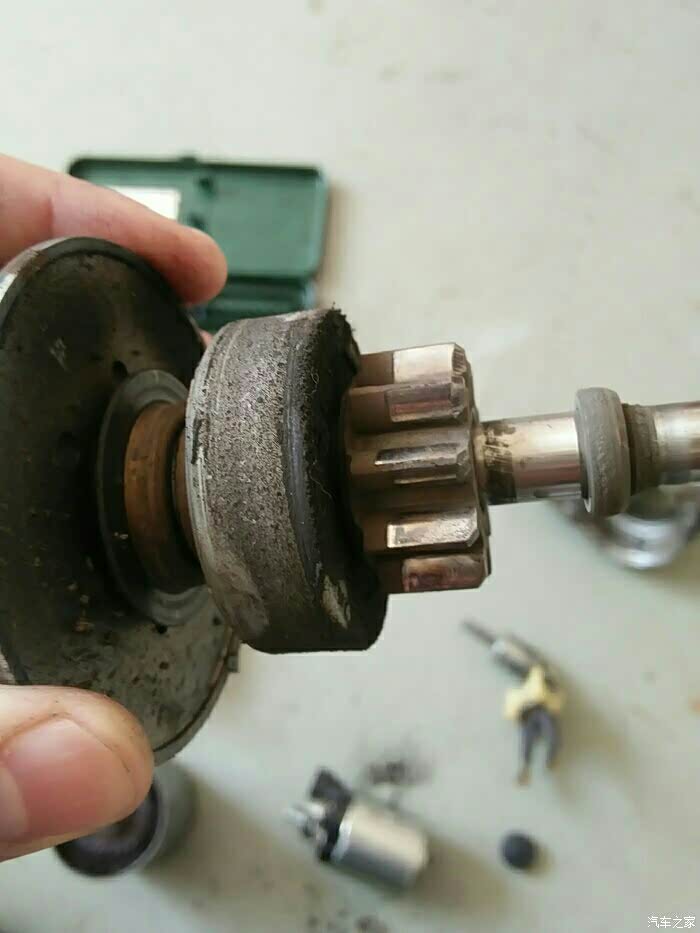 就是这个小齿轮和发动机的飞轮连接启动发动机的。
