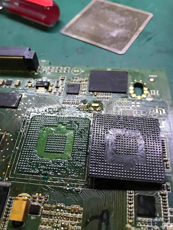 比亚迪s7的中控多媒体屏的通病问题终于解决了,经过3天的检测维修成了。其实就是因为主CPU过热导致焊点开焊老化所至。我们把它摘下来清理焊盘重新焊接然后加散热完全解决。下面就是一些维修过程与方法,如有动手能力强想自己修的,可以试试此方法。