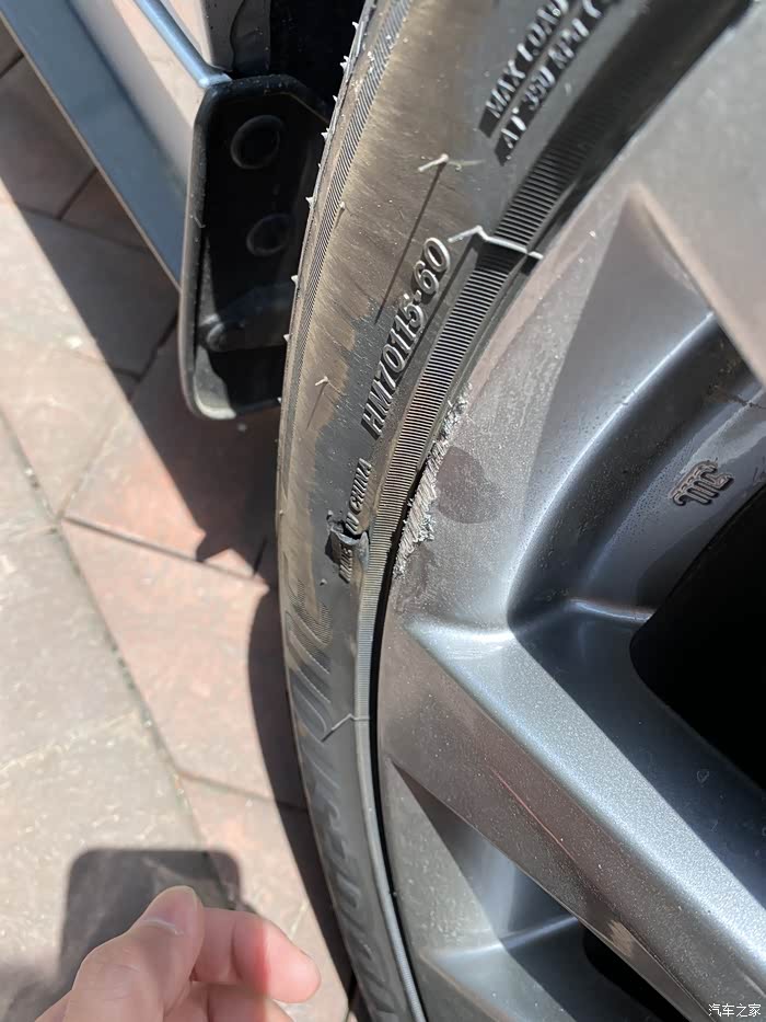 公司附近小区停车,没看到石墩子,蹭到了轮胎,二血,再心疼!