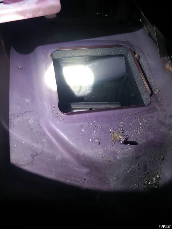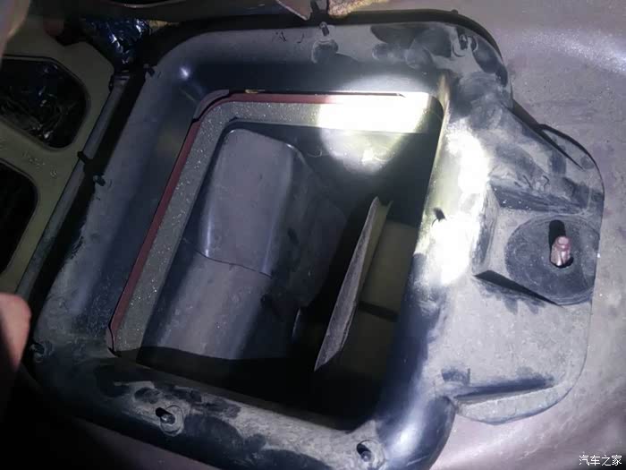 去掉黑色组件的样子,方口下面就是空调鼓风机,以前灰尘就是从这里进去的。