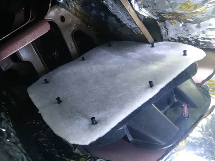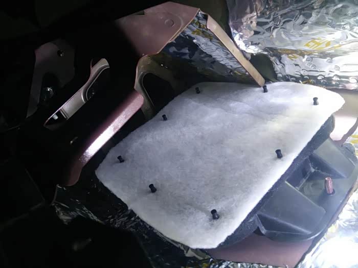 顺便做了U形槽的隔音。降低发动机噪音效果比较明显,另一效果是阻隔发动机进入驾驶室的热量。