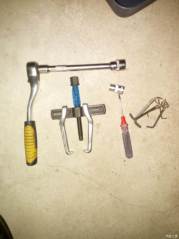 拆雨刮器的利器——拉马,左数第二个东西,非常好用,丝毫不损伤雨刮器连接部位。