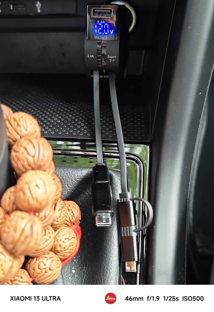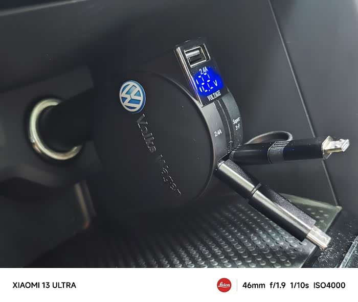 伸缩式手机充电器,直接插在点烟器处,伸缩式最大的好处就是中控区域整洁利落,最大的坏处就是不支持快充,苹果10W,安卓12W,不过单独有个U***接口,据说安卓可以达到40W,还有待测试
