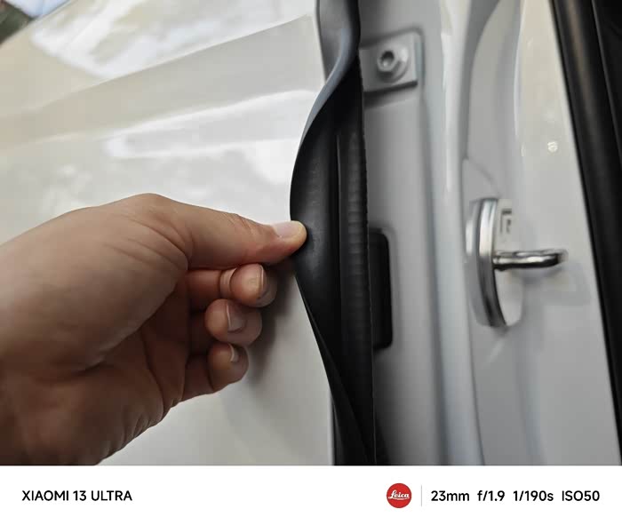 这是B柱密封胶条,原车前后门之间有很大间隙,装上这个密封条可以有效地防尘防水,而且关门时有一定缓冲效果,同时也能起到一定保护车门的作用