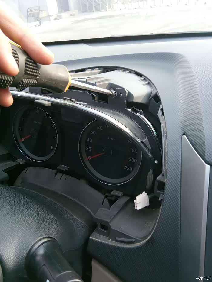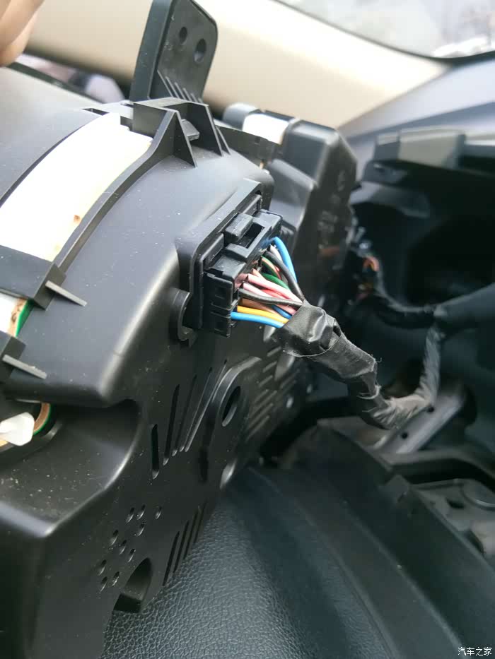 取下螺丝后把仪表盘翻过来,拔掉后面三个插头。因为是第一次,插头会比较紧,得用点力气(艾玛,不说了,脑子里有画面了)。