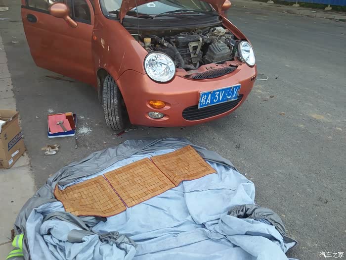 准备开工,平时地上我只铺车衣垫,现在下午过来,马路都是热乎乎的,只能拿出后排坐垫