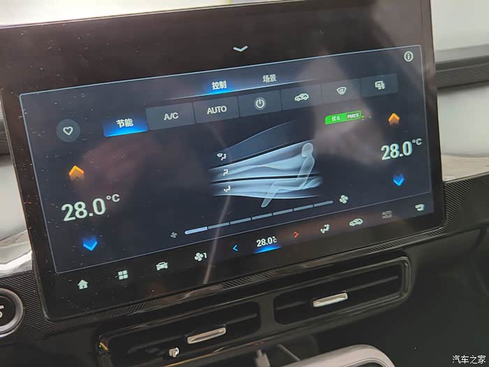 首先开启空调,把设置调为节能模式,温度调到最高,风量3档以上,让它空调迅速制热,注意不要开AC,在使用暖风的过程中,不开AC热车效果还是挺不划的,而且电耗绝对比开AC电耗小很多,小伙伴们可以试试