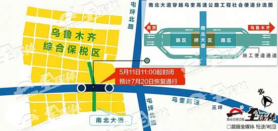 都市消费晨报、亚心网全媒体讯(文/记者 于惠如 图/新疆交通规划勘察 设计研究院提供 制图/马燕)因乌鲁木齐综合保税区南北大道穿越乌奎高速公路工程施工需要,G30乌奎高速公路三坪农场段将从5月11日11:00起封闭,预计7月20日恢复通行。