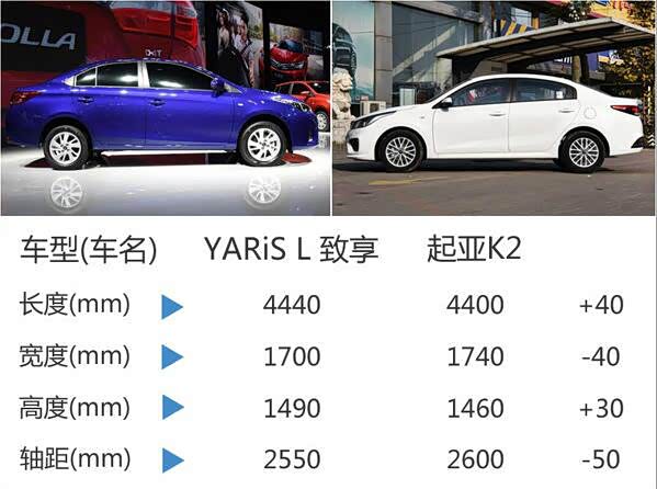 前小型车市场上,一汽丰田此前推出的威驰和起亚K2都有不错的表现。YARiS L致炫车身长宽高4440/1700/1490mm,轴距2550mm。从车身尺寸对比来看与同门师姐威驰的轴距相同。