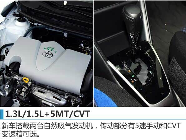 动力方面,新车将搭载1.3L和1.5L两款小排量自然吸气发动机,最大功率分别为73kW、79kW,峰值扭矩123Nm、140Nm。两款动力系统都提供5速手动和CVT变速箱可选。