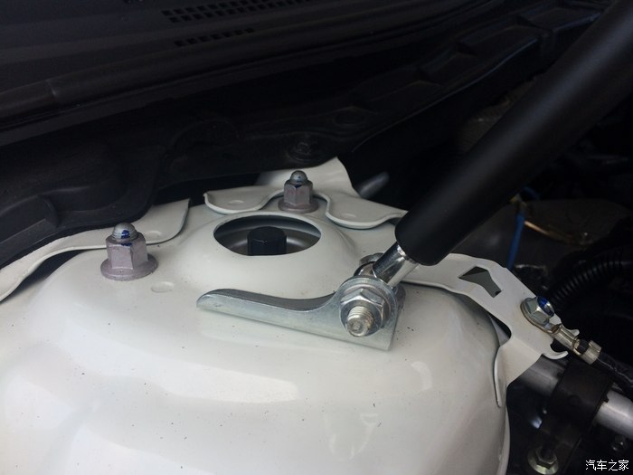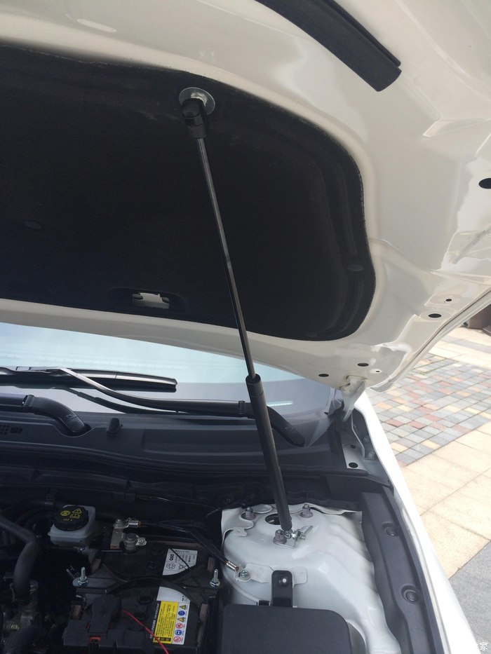 前几天在某宝上买了装在叶子板那里的液压杆,装好后发现机盖压下去的时候叶子板也会跟着动,大家都知道叶子板是很薄的不会牢固,马上果断退货,后来又在网上买了装在减震那里位置上的液压杆,之后就没有这样的问题了!压下去快到底的时候自动会吸合机盖,效果非常好,现在上图片!我发出来的意思就是让大家都知道一下,装在叶子板那里位置不牢固。红色的车位置就是叶子板那里的.白色的就是减震那里的!