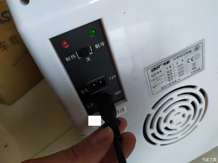 观察一下这款车载冷暖箱的背面,主要是一块电源接触面板,上面有制热与制暖开关以及指示灯,下侧是家用交流电接口以及车载用直流电接口,直流电接口和交流电接口都使用了防呆接口设计,直流与交流接口外形设计不同可以防呆,直流接电接口自身也采用了防呆接口,避免了正负极接错,还是不错的安全设计。旁边的铭牌,显示整个冷暖箱的功率参数。底部带有散热通风风扇的出风口,使用的时候千万不要阻挡。