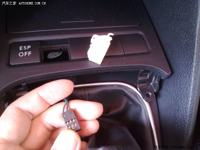 拆掉黑色接口中的线束,将胎压监测开关的线束分接到ESP开关上取电