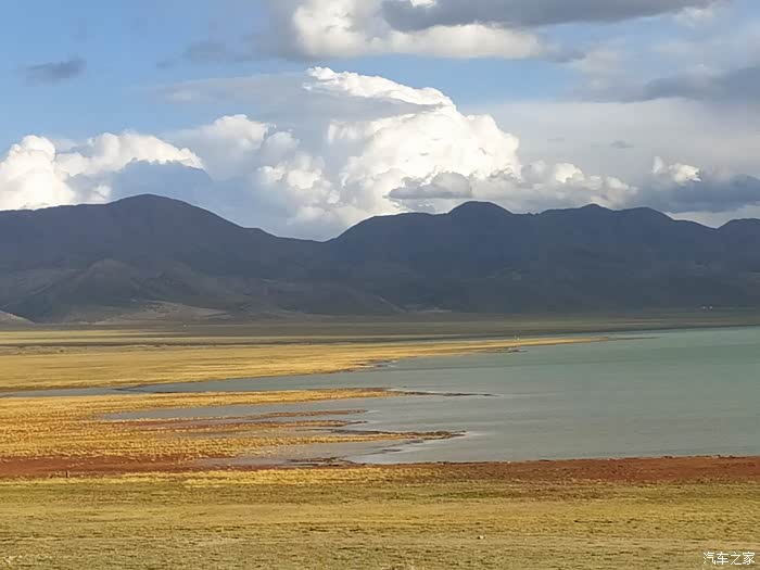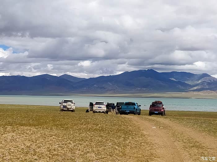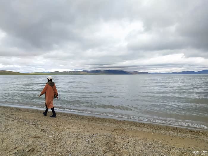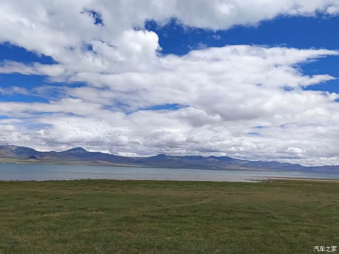吓嘎措,位于改则县夏嘎村,湖没有诱人的蓝,呈黄褐色,感觉盐的浓度很高,水鸟在湖