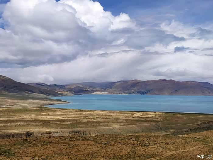 普莫雍措,感受海拔5000米的天空之湖……巨大的湖面被群山环抱,阳光透过云层照在湖面上,波光粼粼、蔚蓝剔透。