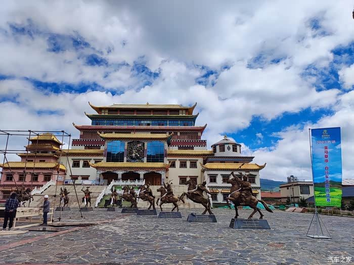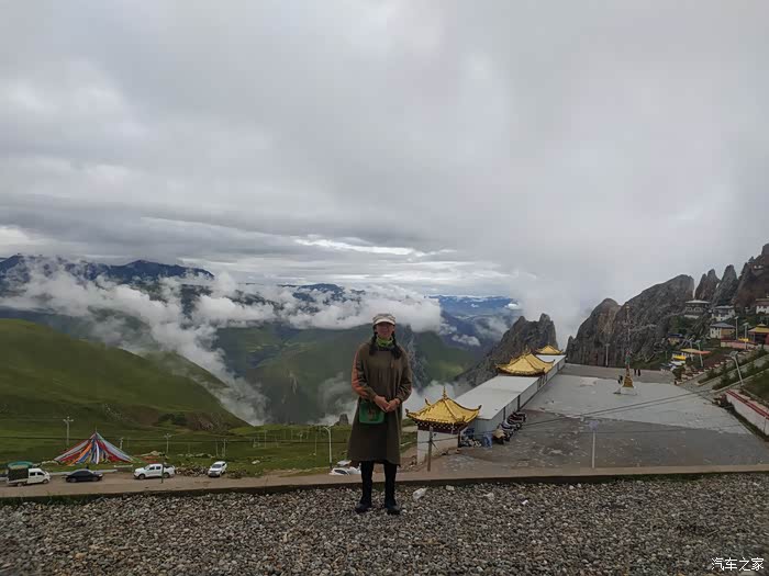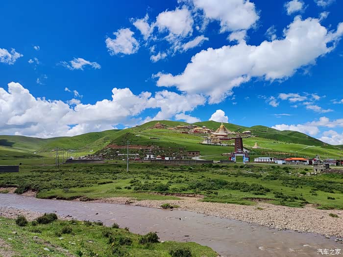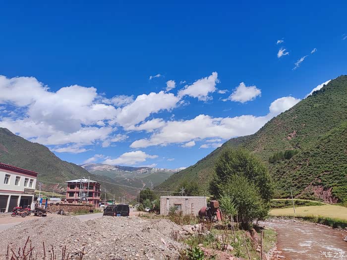 2023.08.08第七天: :317转国道548到色达,参观格萨尔王广场博物馆,转县道6389上国道317到甘孜,翻越乃龙山垭口海拔4580米,夜宿甘孜县卡攻乡加柯温泉旁。海拔3473米。(全天行驶560公里)