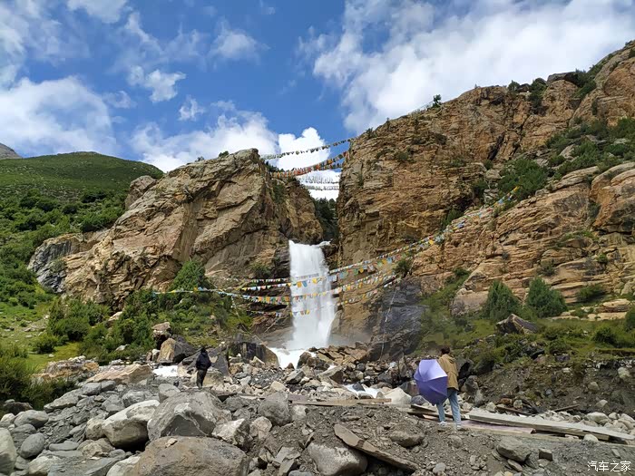 走在国道219隆子县境内,无意间心被隆隆的水声催醒,一条硕大的瀑布从山巅垂下,好不壮观,蓝天白云下,苍翠林木旁,雄曲涛涛有声……
