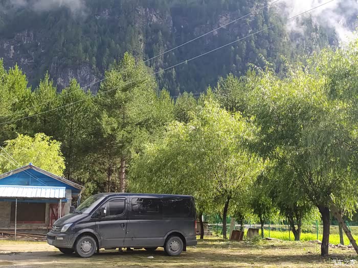 衣食无忧的我,天刚亮就在沟里闲逛,看着山间的流水,山坡上的高大树木和坡底泛黄的青稞以及仅有的几座藏族民居放出来的袅袅炊烟,只有水声和各种鸟儿的鸣唱沁入耳中。偶有零星的当地居民骑着摩托车上山,通过交流才知道他们为了生计早起进山采蘑菇……
